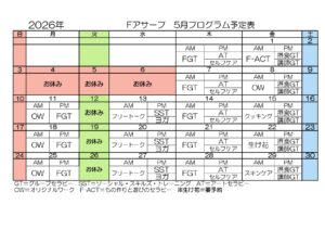 2026/04/20 デイケアプログラム 5月のデイケアプログラム アサープ月間予定表 Fアサープ月間予定表 アーカイブ 2026年4月 2026年3月 2026年2月 カテゴリー アルコール・薬物家族グループお知らせギャンブルワークショップギャンブル家族グループデイケアプログラムビギナープログラム問診票はこちら家族教室面会